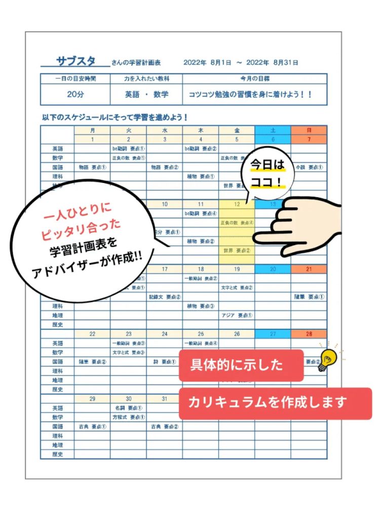 予備校や塾講師のプロが作る完全オーダーメイドの学習計画